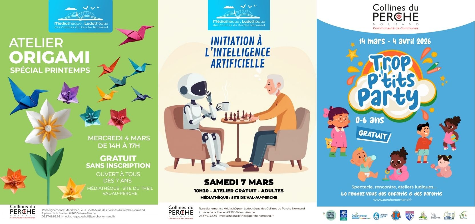 – 14 mars : début de la Trop P’tits Party, trois semaines d’animations destinées 0-6 ans, un festival proposé par les services de la Communauté de Communes des Collines du Perche Normand – Gratuit >> retrouvez le programme complet sur notre site internet : https://www.perchenormand.fr/