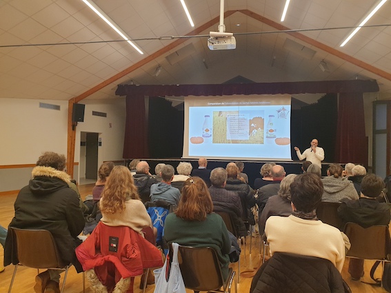 A l’invitation du jardin partagé de Val-au-Perche, une trentaine de personnes était présente vendredi à la salle polyvalente Jean Beaudoux du Theil pour écouter l’éloquent Samuel Rebulard, ingénieur et agronome, chercheur à l’université Paris-Saclay, pour une conférence intitulée « Mon assiette et le climat ».