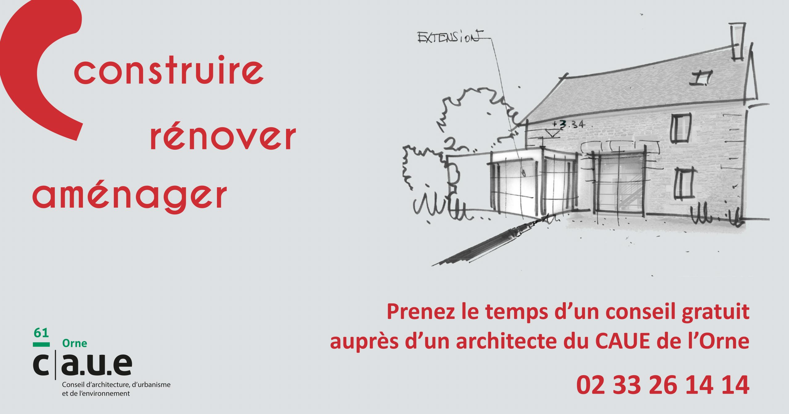 Depuis le 01 février 2026, la prise de rendez-vous s’effectue en ligne sur notre site internet : https ://www.caue61.fr/prenez-rendez-vous-avec-un-architecte-du-caue/