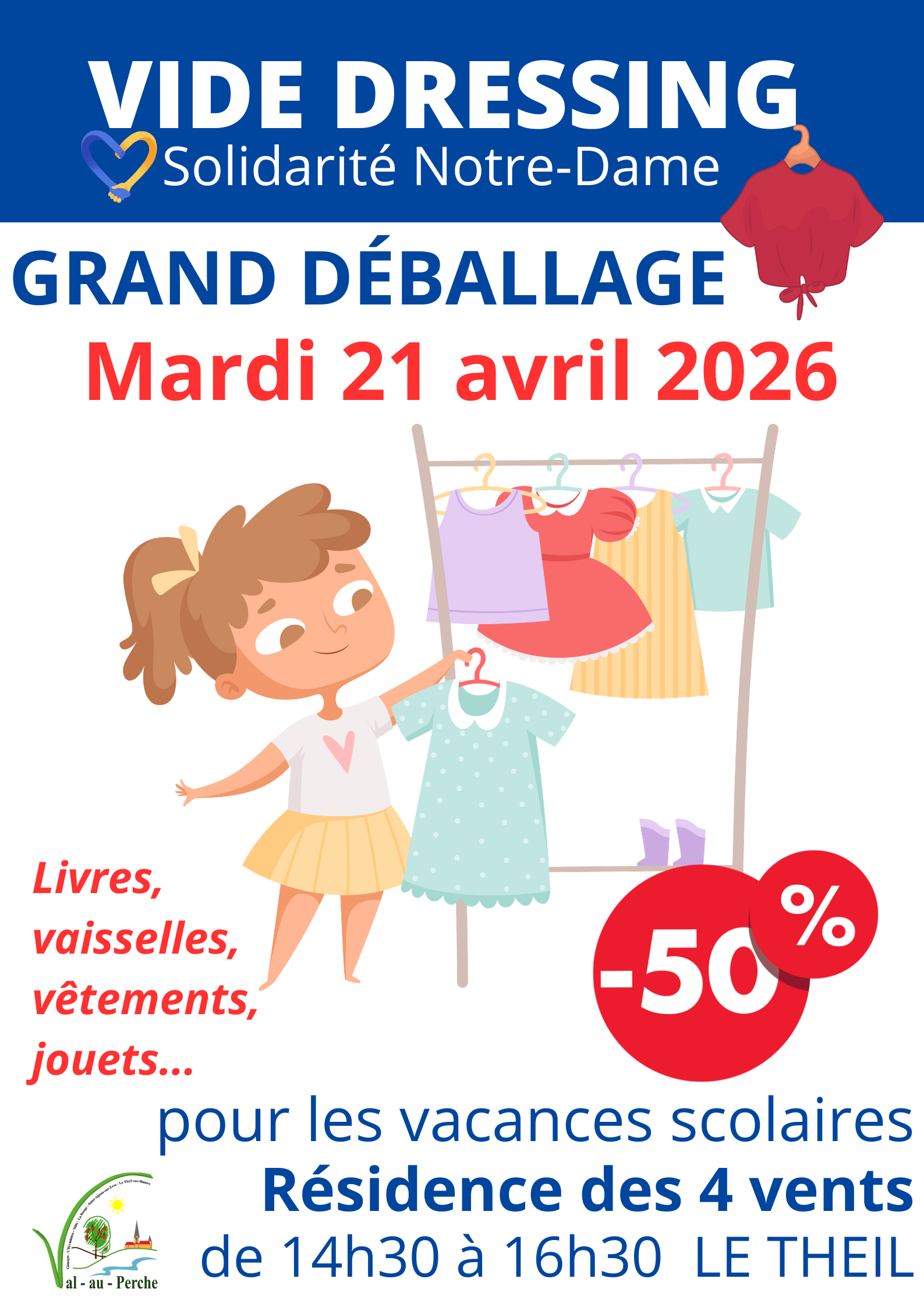 L’Association Solidarité Notre-Dame organise une grande braderie de son vide-dressing le mardi 21 avril de 14h30 à 16h30 au local de la Résidence des 4 Vents : – 50 %