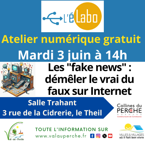 L’atelier aura lieu ce mardi 3 juin à 14h, au siège de la communauté de communes, salle Trahan, 3 rue de la Cidrerie. Théo, votre conseiller numérique.