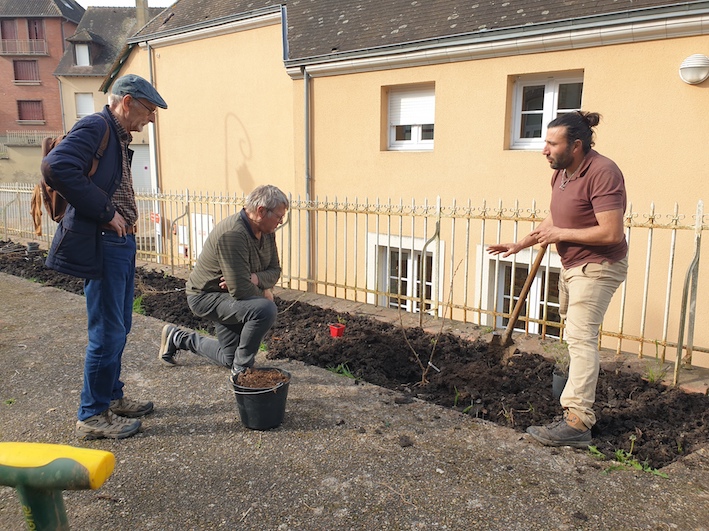 Sur proposition de Sarah Sekaly, animatrice du jardin partagé du Theil à Val-au-Perche, une haie fruitière a été plantée par les habitants de la commune aux abords de la mairie, dans un espace en cours de réaménagement. « Elle s’inscrit dans un projet plus global pour une ville plus verte, plus nourricière et plus solidaire », explique Sébastien Thirouard, Maire de Val-au-Perche.