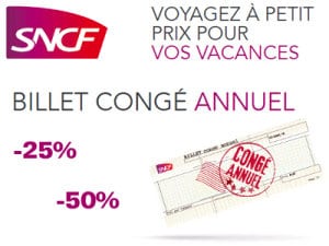 Avec le billet de congé annuel de la SNCF, vous pouvez bénéficier une fois par an d’une réduction de 25 % pour partir en vacances. Il faut pour cela voyager en France et parcourir une distance d’au moins 200 km aller-retour.