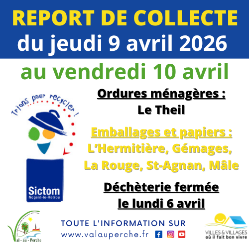 En raison du lundi 6 avril, férié, toutes les collectes de la semaine de Pâques seront décalées au lendemain, soit du jeudi 9 au vendredi 10 avril !