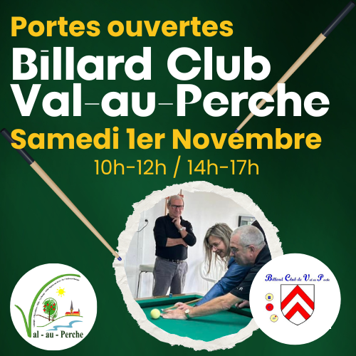 Le Billard Club de Val-au-Perche ouvre ses portes samedi 1er novembre de 10h à 12h et de 14h à 17h.