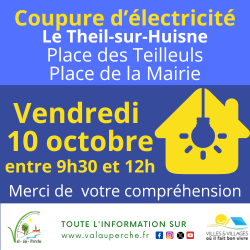 Vendredi 10 octobre de 9h30 à 12h : coupure de courant pour travaux.