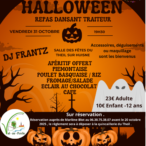 L’Association des Parents d’Élèves de Mâle – La Rouge organise un repas Halloween le vendredi 31 octobre à partir de 19h30 à la salle Jean Beaudoux du Theil à Val-au-Perche.